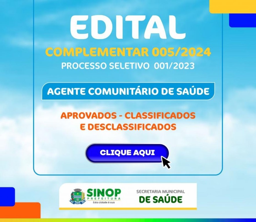 A Secretaria Municipal de Saúde comunica que já foi publicada a lista dos candidatos aprovados e classificados no Processo Seletivo Público nº. 001/2023, para contratação de 81 Agentes Comunitários de Saúde (ACS). Do total, 77 vagas são de ampla concorrência e quatro vagas reservadas para portadores de necessidades especiais.