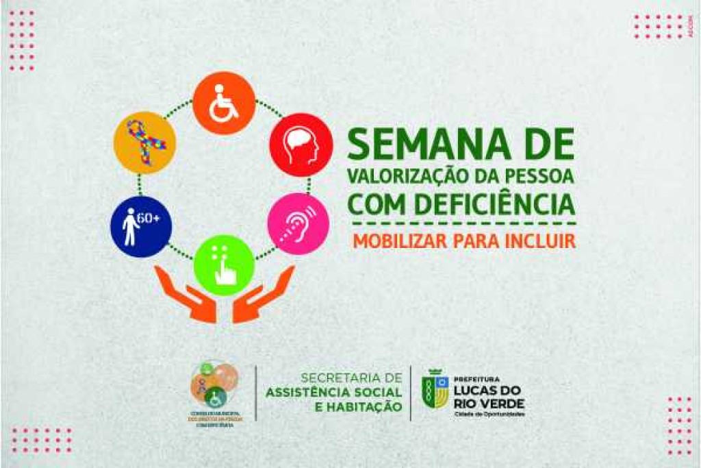 A Prefeitura de Lucas do Rio Verde, por meio da Secretaria de Assistência Social e Habitação e Conselho Municipal dos Direitos da Pessoa com Deficiência informa que a abertura oficial da 4ª Semana Municipal de Valorização da Pessoa com Deficiência será no dia 18 de setembro, próxima segunda-feira.