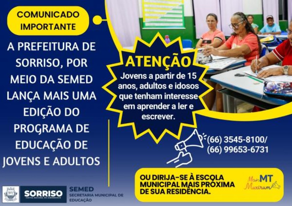 “Esse programa é muito importante, porque atende àquelas pessoas que não tiveram oportunidade de frequentar a escola, dando mais dignidade a elas. Uma das estratégias utilizadas é ofertar o ensino em locais mais próximos das casas dos inscritos”, afirma.