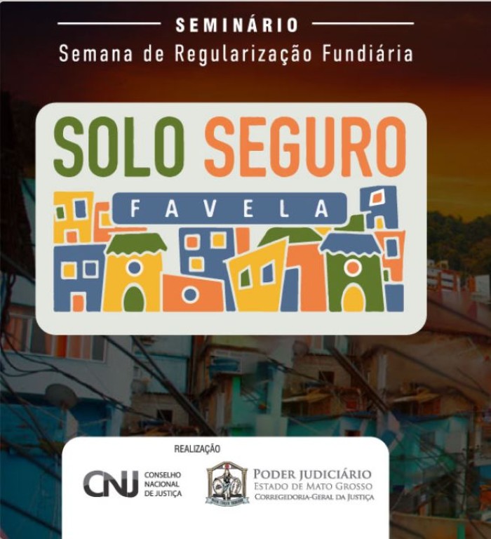 A Corregedoria-Geral da Justiça de Mato Grosso (CGJ-TJMT) promove na próxima quinta-feira (06), às 14 horas, o seminário virtual Solo Seguro – Núcleos Informais e Favelas que abordará temas como usucapião e adjudicação extrajudicial e modalidades de regularização urbana. O seminário é aberto ao público em geral e para participar basta preencher o formulário neste link.