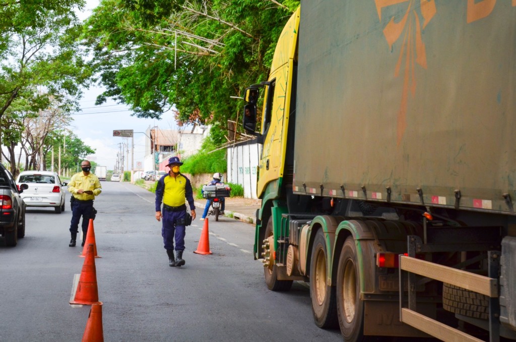 A ação dos agentes de trânsito ocorreu após ser encaminhado denúncia de que caminhoneiros estão desviando da Rodovia dos Imigrantes, em Várzea Grande, para entrar com cargas em Cuiabá a partir da Avenida Beira Rio.