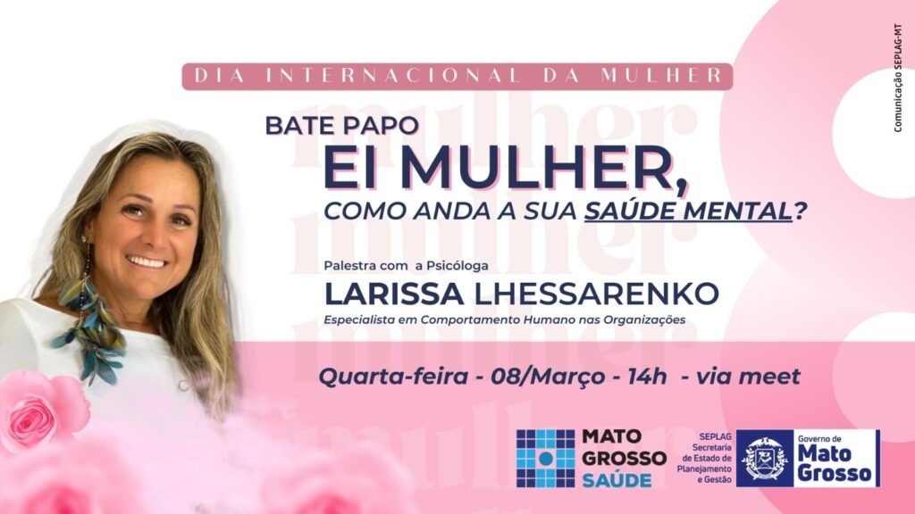 A Secretaria de Estado de Planejamento e Gestão (Seplag), em parceria com MT Saúde, realiza nesta quarta-feira (08.03), quando se comemora o Dia Internacional da Mulher, o bate-papo “Ei, mulher, como anda a sua saúde mental?”.