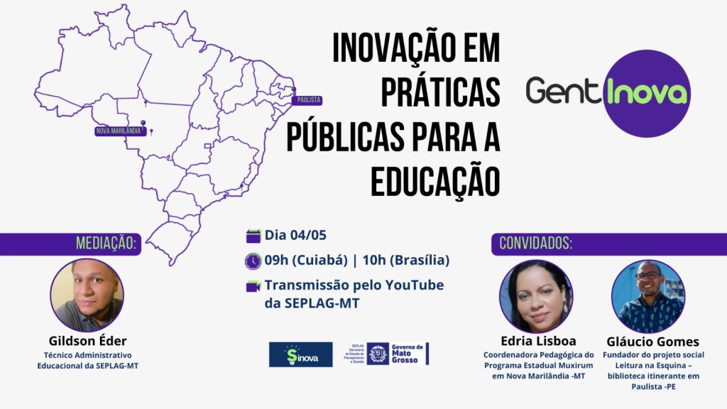 A live será coordenada pela Secretaria Adjunta de Planejamento e Gestão de Políticas Públicas e do Sistema de Inovação em Práticas Públicas de Mato Grosso (Sinova-MT), e traz como foco o Programa Mais MT Muxirim, do Governo estadual, que busca reduzir o índice de analfabetismo de pessoas com 15 anos ou mais em Mato Grosso. A coordenadora pedagógica do programa em Nova Marilândia (MT), Edria Lisboa, é a convidada para o bate-papo.