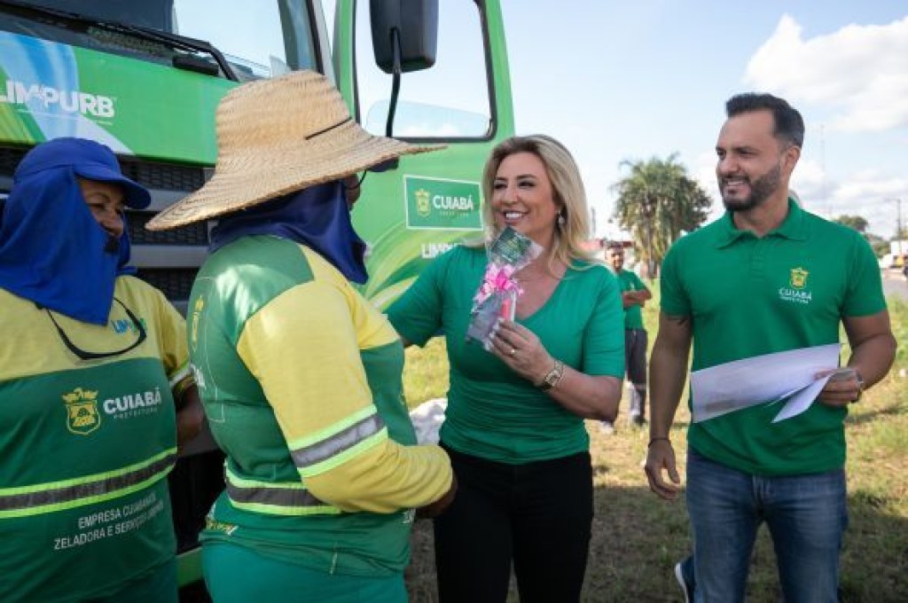 Servidoras da Empresa Cuiabana de Zeladoria e Serviços Urbanos (Limpurb) receberam 50 kits de maquiagem e mais nove vouchers (vale-jantar), como homenagem pelo Dia das Mães. A entrega foi realizada nesta sexta-feira (12) pela primeira-dama de Cuiabá, Marcia Pinheiro, juntamente com o diretor-geral da empresa pública, Júnior Leite.