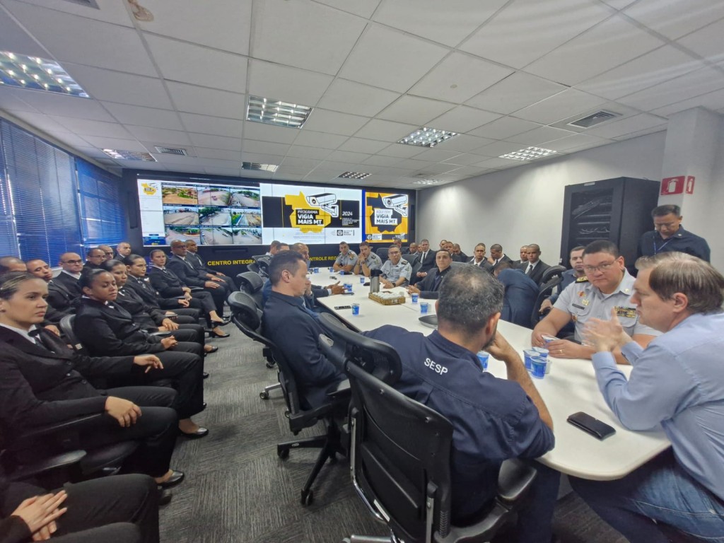 Além de receber informações do próprio secretário sobre as forças policiais, os alunos oficiais conheceram o sistema de videomonitoramento do Programa Vigia Mais MT e visitaram o Centro Integrado de Operações de Segurança (Ciosp).
