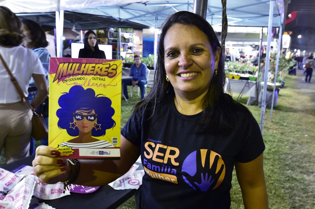 A Secretaria de Estado de Assistência Social e Cidadania (Setasc) promove ação de conscientização sobre violência contra mulher durante a 55ª Expoagro 2023, por meio da Câmara Temática de Defesa da Mulher. A atividade está sendo realizada em parceria com a Política Militar, Polícia Civil, Defensoria Pública do Estado e Ministério Público de Mato Grosso, seguindo durante toda a duração do evento. Na noite de quinta-feira (13.07), a ação recebeu a visita da secretária da Setasc, Grasi Bugalho.