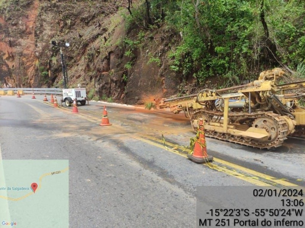 O Governo de Mato Grosso tem monitorado a situação da MT-251, no trecho do Portão do Inferno, em razão dos riscos geológicos identificados no local. O monitoramento é realizado por técnicos da Sinfra e da Defesa Civil, e conta com apoio do Batalhão de Trânsito da Polícia Militar.