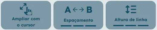 Para esses públicos, o aumento do espaçamento entre as palavras e da altura de linhas pode diminuir a sobrecarga visual e contribuir para uma leitura mais fluida e menos cansativa.