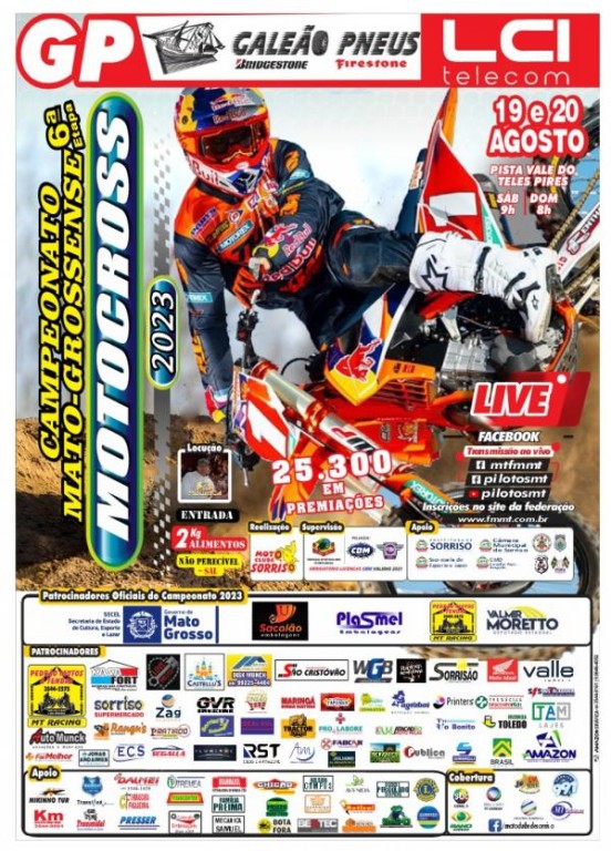 Promovido pelo Moto Clube Sorriso, o Campeonato Mato-grossense de Motocross conta com o apoio da Prefeitura, por meio da Secretaria Municipal de Esporte e Lazer (Semel), e da Câmara de Vereadores.