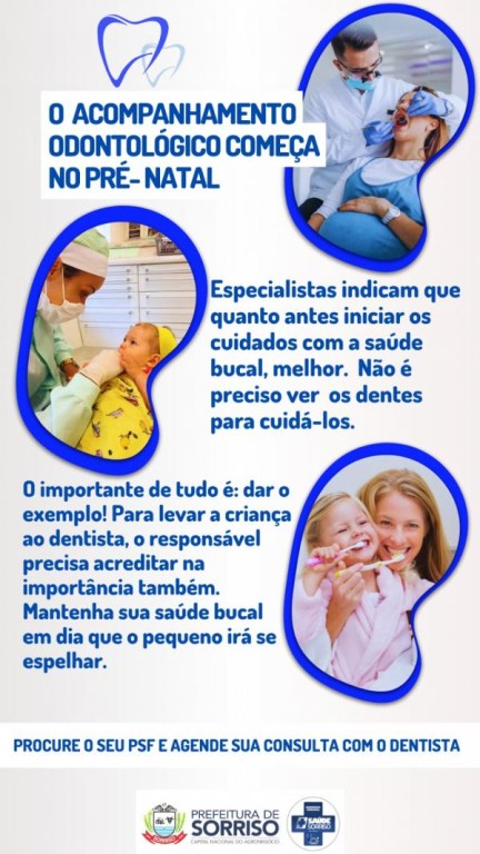 Além disso, o Município também oferta tratamento odontológico para o bebê, desde o nascimento. Junto com as orientações de como realizar a higiene bucal do recém-nascido, as mães recebem um kit que conta com gaze, soro e dedeira para garantir a limpeza da boca do bebê.