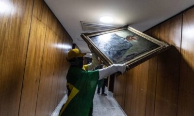 Reprodução: redes sociais – 09/01/2023 Obra de arte vandalizada no dia dos ataques O Ministério da Justiça e Segurança Pública compartilhou com a Comissão Parlamentar Mista...
