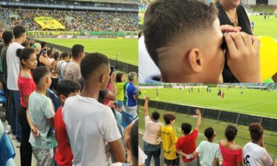 Crianças e adolescentes entre oito e 17 anos e 11 meses que estão nas casas de acolhimento do município de Várzea Grande visitaram a Arena Pantanal...