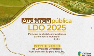 Como forma de oportunizar a participação popular nas decisões do Município, a Prefeitura de Lucas do Rio Verde ralizará, no dia 25 de abril, às 18h,...