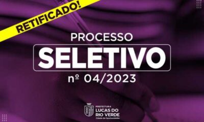 A Prefeitura de Lucas do Rio Verde publicou, nesta sexta-feira (29), a retificação nº 01 do Processo Seletivo Simplificado nº 04/2023, para a Secretaria Municipal de...