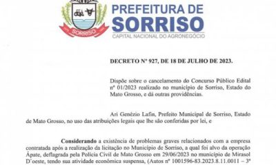 Inscritos no concurso público 0001/2023, rescindido pela Prefeitura de Sorriso, podem solicitar o reembolso do valor da inscrição. A recomendação é para todos os que realizaram...
