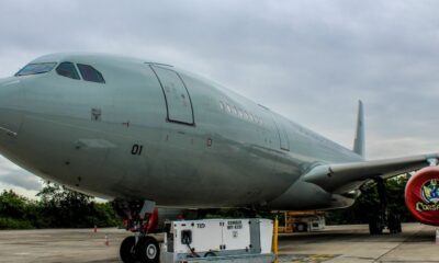 Uma aeronave KC-30 (Airbus A330 200) aguarda autorização para decolar da Base Aérea do Galeão, no Rio de Janeiro, para fazer a repatriação de mais brasileiros...