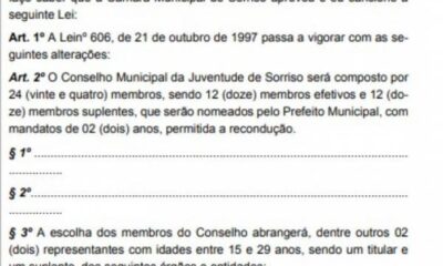 Segundo a nova Lei 3.516, de 05 de abril de 2024, apenas dez órgãos e entidades representarão o Conselho Municipal da Juventude de Sorriso MT. Responsáveis...