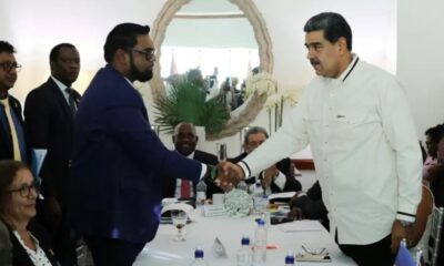 Marcelo Garcia / AFP Irfaan Ali à esquerda, presidente da Guiana e Nicolás Maduro, da Venezuela, à direita O assessor especial da Presidência, Celso Amorim, destacou...