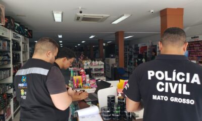 Equipes da Delegacia Especializada de Defesa do Consumidor, Vigilância Sanitária de Cuiabá e Procons da capital e de Várzea Grande recolheram em nove lojas de uma...