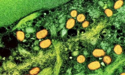 Reprodução/NIAD 13.08.2022 Micrografia eletrônica de transmissão colorida de partículas do vírus da varíola dos macacos (amarelo) encontradas dentro de uma célula infectada (verde), cultivadas em laboratório...