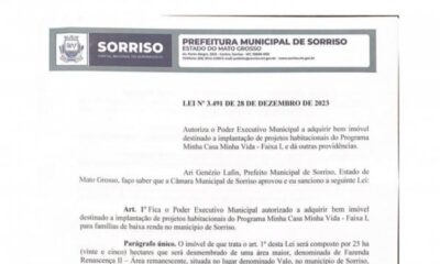 Próximo ao Residencial Mário Raiter O prefeito Ari Lafin, sancionou na última quinta-feira (28), a Lei 3.491, que autoriza a compra de 25 hectares para a...