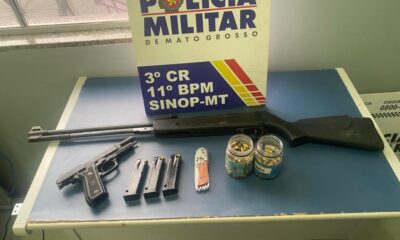Policiais militares do 11º Batalhão apreenderam, em duas ações distintas, três armas de fogo, munições e prenderam dois homens por porte ilegal nos municípios de Sinop...