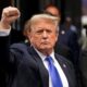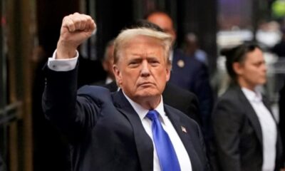 TIMOTHY A. CLARY Donald Trump levanta o punho ao chegar à Trump Tower após ser condenado criminalmente em Nova York, em 30 de maio de 2024...