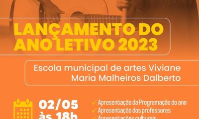 A Secretaria de Educação, Esporte e Cultura realizará na próxima terça-feira (02), às 18h, o lançamento do ano letivo 2023, da Escola Municipal de Artes Viviane...