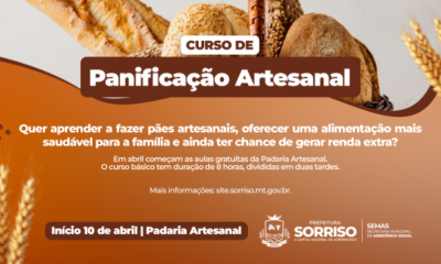 A Secretaria de Assistência Social e Habitação de Lucas do Rio Verde está com inscrições abertas para o curso de Panificação Artesanal. A capacitação será oferecida...
