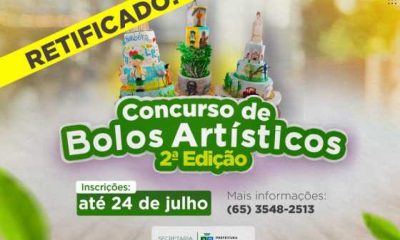 A Secretaria de Cultura e Turismo de Lucas do Rio Verde publicou, nesta terça-feira (18), a retificação nº 01 do edital do “Concurso de Bolos Artísticos...