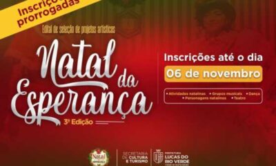 A Secretaria de Cultura e Turismo de Lucas do Rio Verde prorrogou as inscrições do edital “Natal da Esperança – 3ª Edição”. Os interessados em participar...