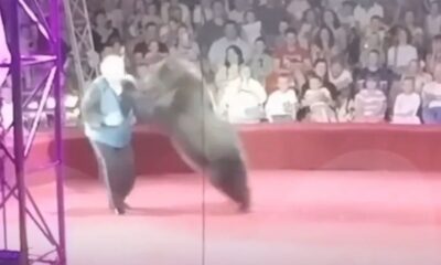 Reprodução Ursa se revoltou no meio da apresentação Uma ursa se revoltou contra o próprio treinador e o atacou após ser forçada a se apresentar em...