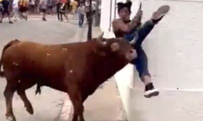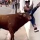 Reprodução Mulher distraída com celular é atacada durante corrida de touros na Espanha No último domingo (27), uma jovem mulher foi atingida por um touro na...
