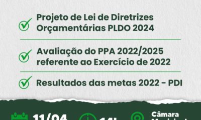 A Prefeitura de Sinop realizou ontem (11), no plenário da Câmara Municipal, a AUDIÊNCIA PÚBLICA de apresentação e discussão do Projeto de Lei de Diretrizes Orçamentárias...
