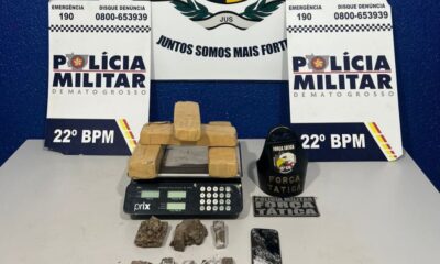 Equipes do 22º Batalhão e da Força Tática do 15º Comando Regional prenderam em flagrante um homem de 28 anos por tráfico ilícito de drogas, na...