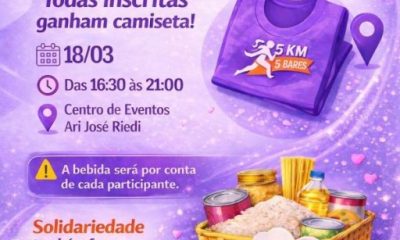 Inscritas para a “Corrida 5 Km 5 Bares” que será realizada nesse sábado, dia 21 de março, devem retirar as camisetas nesta quarta-feira, 18, e na...