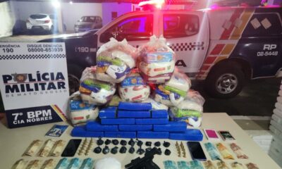 Policiais militares de Nobres prenderam um homem de 32 anos por tráfico de drogas e porte ilegal de arma, na noite desta quarta-feira (27.09). Na ação,...