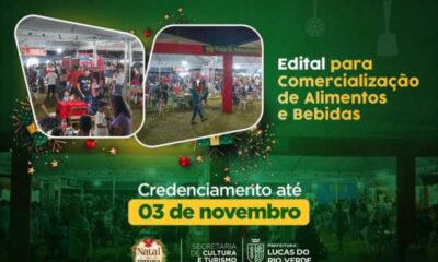 A Prefeitura de Lucas do Rio Verde, por meio da Secretaria de Cultura e Turismo, abriu nesta quinta-feira (26), o credenciamento para a comercialização de alimentos...