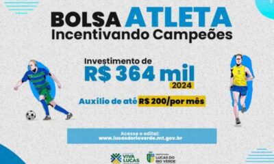 A Prefeitura de Lucas do Rio Verde divulgou, nesta terça-feira (02), a lista dos atletas aprovados no Bolsa Atleta “Incentivando Campeões”, edição 2024. Os aprovados deverão...