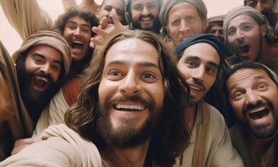 Duncan Thomsen / SWNS Selfie de A Última Ceia com Jesus tirando foto e alguns dos apóstolos sorrindo Um editor de filmes britânico usou a inteligência...