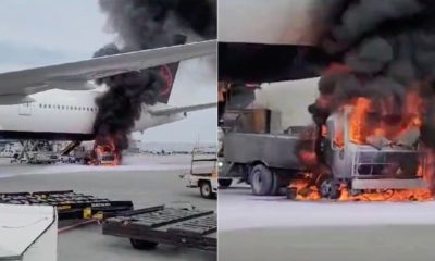 Montagem iG / Imagens: reprodução / Twitter – 09.07.2023 Caminhão pegou fogo embaixo de aeronave no Canadá Um caminhão-pipa pegou fogo embaixo de um avião que...