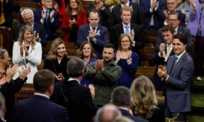 Reprodução/Twitter 24.09.2023 Zelensky e o premiê Justin Trudeau após discurso do presidente da Câmara. O presidente da Câmara do Parlamento do Canadá apresentou uma carta em...