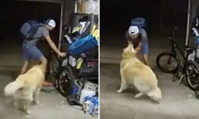 Reprodução/Facebook O cãozinho foi amigável com o intruso e ganhou carinho na barriga Um ladrão – que não foi identificado – flagrado por uma câmera de...