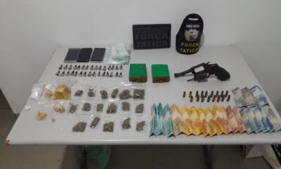 Policiais militares da Força Tática do 7º Comando Regional prenderam um homem de 21 anos e uma mulher de 20 anos por tráfico ilícito de drogas...