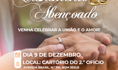 As inscrições para o Casamento Abençoado 2025 em Cuiabá seguem abertas até o dia 30 de janeiro. A cerimônia coletiva, idealizada pela primeira-dama de Mato Grosso,...