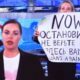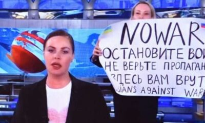 Reprodução / X Marina Ovsyannikova, de 45 anos, exibiu um cartaz criticando a invasão russa na Ucrânia durante transmissão ao vivo em televisão A repórter russa...