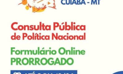 A Prefeitura de Cuiabá, por meio da Secretaria Municipal de Cultura, Esporte e Lazer, informa que o prazo para preenchimento do formulário de participação na Consulta...