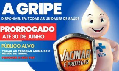 A Secretaria de Saúde de Sinop informa que foi prorrogado o prazo da campanha de vacinação contra a gripe, até o dia 30 de junho. O...