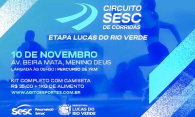 Termina neste domingo (3) as inscrições para o Circuito Sesc de Corridas – Etapa Lucas do Rio Verde. A realização é da Prefeitura e Sesc MT...