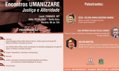 Nesta sexta-feira (04/05), das 8h às 12h15, será realizado o primeiro encontro sobre dependência química e seus dependentes, intitulado ‘Umanizzare – Justiça e Alteridade’. O evento...
